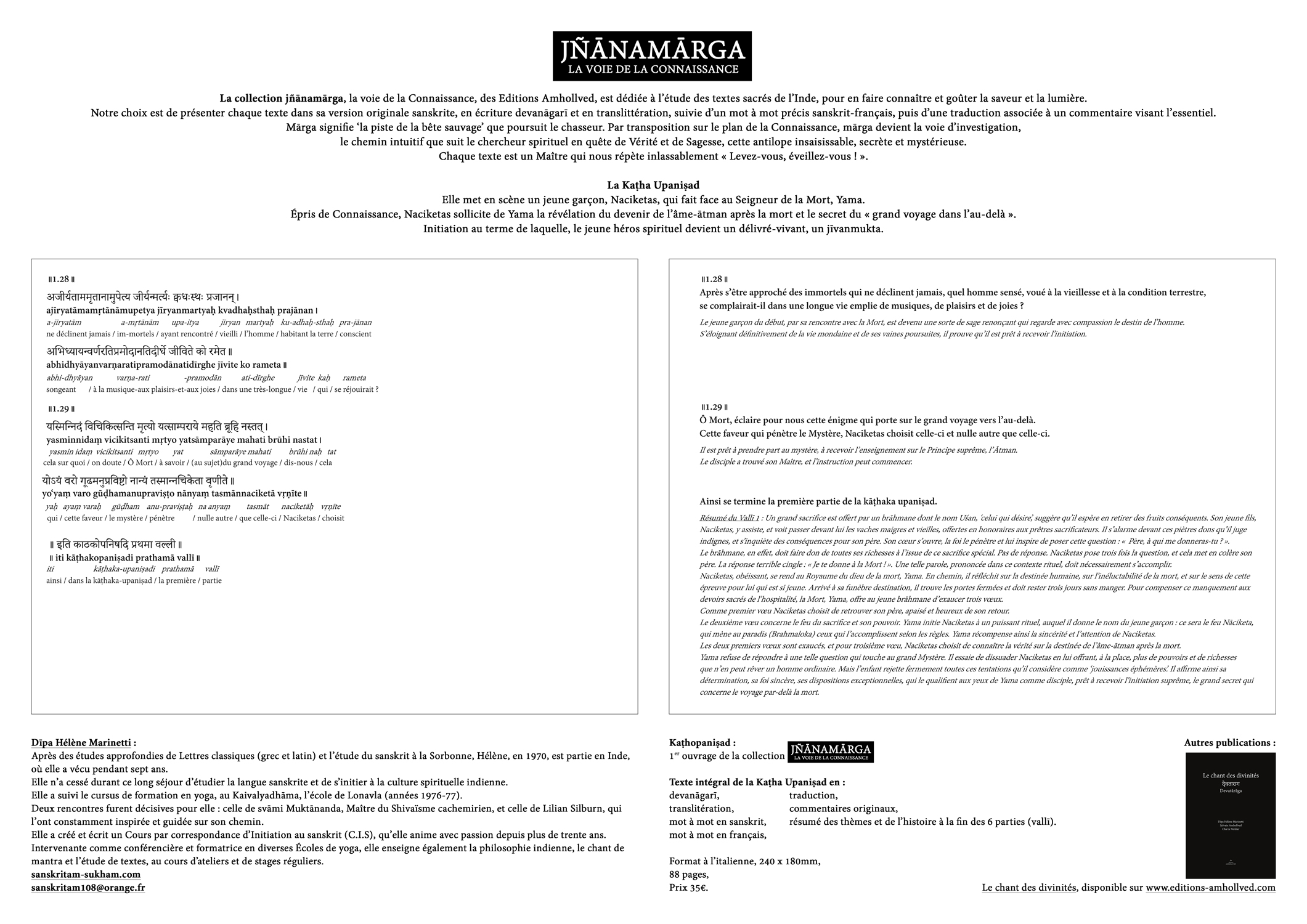 La collection jñānamārga, la voie de la Connaissance, des Éditions Amhollved, est dédiée à l’étude des textes sacrés de l’Inde, pour en faire connaître et goûter la saveur et la lumière.